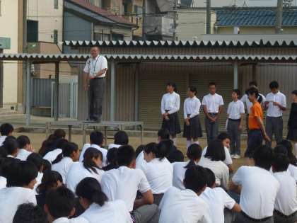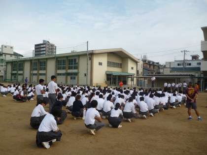 70周年記念誌に載せる全体写真を撮るために、久々に運動場で集会をおこないました。