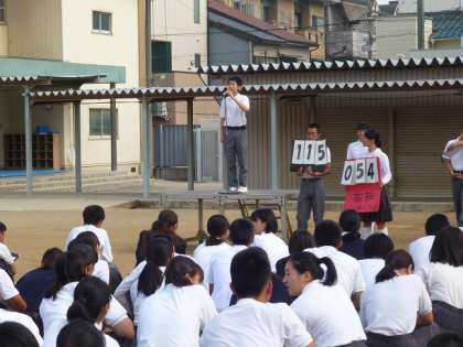 生徒会からは、朝のあいさつ運動の状況を数値化して、多くの人のあいさつの呼びかけをおこないました。