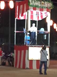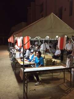 地域を代表される方々を始め多くの住民の方・子ども達や地域防犯の方が参加され、また議員・区役所・消防・警察・その他関係諸機関の代表の人達も大勢駆けつけました。櫓(やぐら)をメインに盆踊り、PTAや地域の出店、子ども会によるゲーム等とても賑やかで楽しいひと時でした。