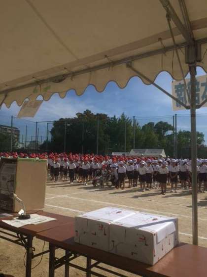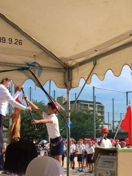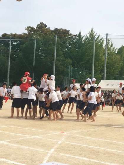 快晴の下、東中川小学校でも運動会が行われました。赤、白分かれての運動会の歌を大きな声で歌った後、各学年とも頑張りました。