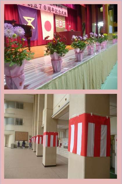 今日は生徒・先生が中心となって、校内清掃と会場準備を行いました。70周年という節目の年に東生野中学校で出会い、一緒に祝えることをたいへん嬉しく思います。
