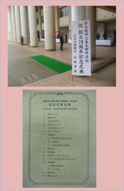 前日からの雨もやみ、大阪市立東生野中学校記念式典が盛大に行われました。