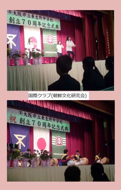 生徒披露として、国際クラブ(朝鮮文化研究会)が華麗なるダンスと楽器紹介並びに練習の成果を感じさせる見事なサムルノリを演じてくれました。