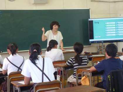 校区小学校6年生が東生野中学校に午後から来校し、2小学校混合で4クラスに分かれて、1学期に引き続き2回目の英語の授業を受けました。