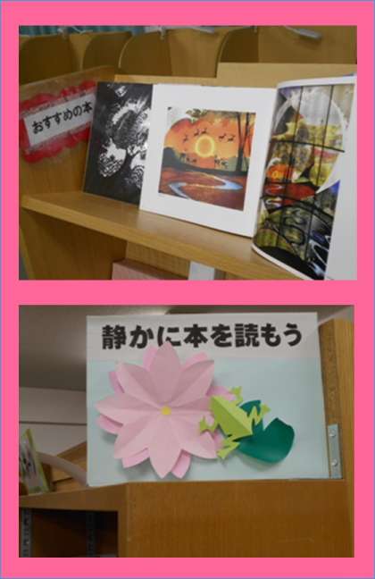 図書館補助員の井上さんが、皆さんが本を読みやすい様に整理・整頓・装飾を施してくれています。