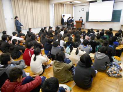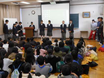 校区2校の小学校6年生が本校を訪れ、生徒会役員による学校説明会を開きました。