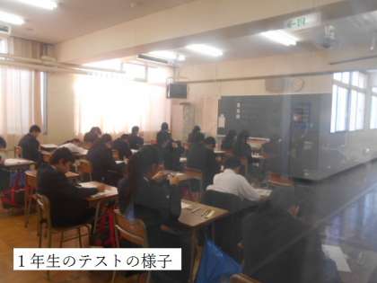 1日目は社会・技術家庭・音楽(1・2年生)・美術(3年生)のテスト。廊下を歩くとシーンと静寂があり、生徒たちは昨日まで勉強してきたことを出し切っていたようです。