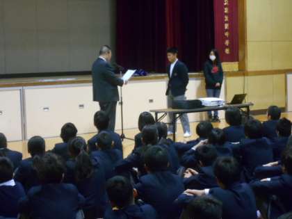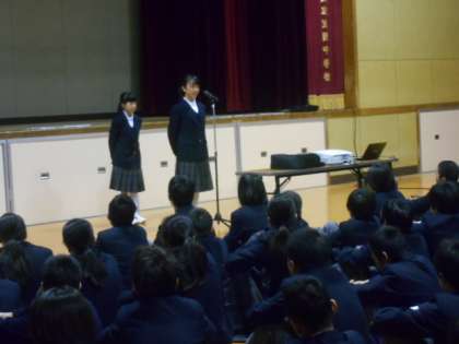 1年生学年代表から夜間学級との交流体験の報告がありました。