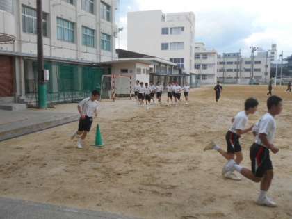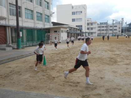 寒風吹きすさぶ中、2年生の体育の授業では長距離走が行われています。