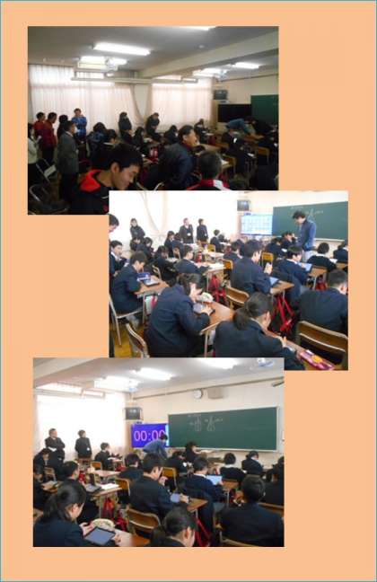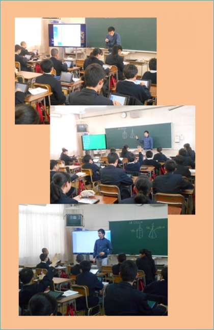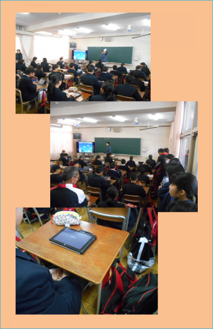 1年3組の教室で数学科の石原先生によるタブレットを使った研究授業を実施しました。