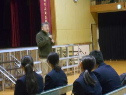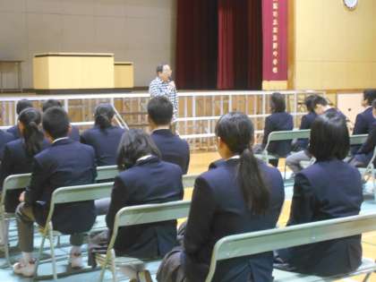 同窓会長 石倉様と前会長 青木様が来校され、後輩たちの為に話をしていただきました。
