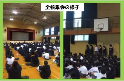 毎週月曜日は体育館で全校集会をします。集合から整列まで生徒会役員が行います。今日も時間までに整列ができ、良かったです。
