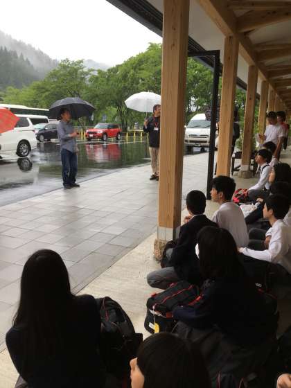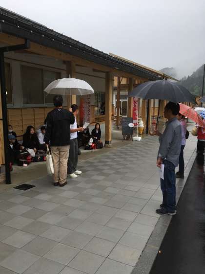 道の駅白鳥会場での様子です。雨天ですが、代表生徒の挨拶はしっかりできました。(宮崎)