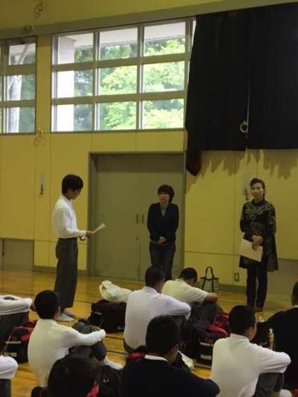 会場は体育館で、各家庭の皆さんが迎えに来てくれています。