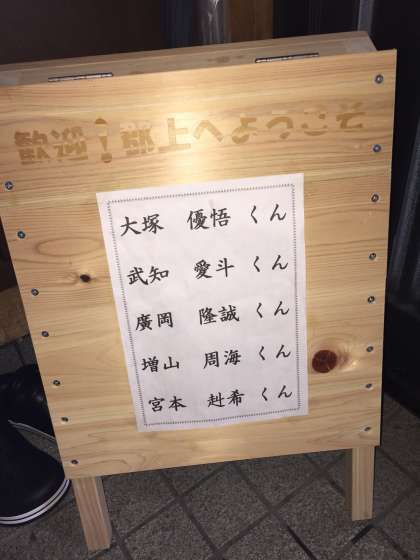 15家庭の玄関に、名前の書かれた看板が用意されています。受け入れていただいた皆様、ありがとうございます。今夜一泊ですが、よろしくお願いします。(校長)