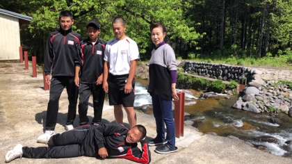 綺麗な川の前での撮影です。昨日はぐっすり寝られました。(浅野)