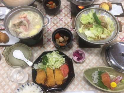ラフティングの後、入浴、自由時間、そして夕食。みんな、たくさんいただきました。