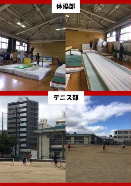 格技室では体操部が、運動場ではテニス部が、体育館では卓球部が練習に試合に活動しています。また、多目的室においてHSL(東生野土曜塾)青木先生に英語を教えていただいています。