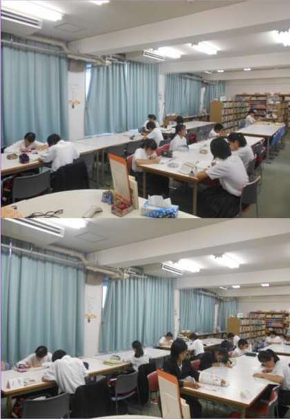 20人の参加生徒は、各自持ち寄った問題集や参考書を見ながら自学自習をしています。