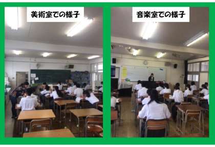 1年生の音楽と美術は、1クラスを2班に分け行っています。