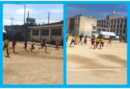 大阪市第5ブロック1年生セブンズ大会が新巽中学校で行われました。セブンズとは、フォワード3人バックス4人の計7人でチーム編成します。