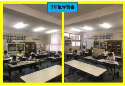教室では3年生数学補習授業、テニス部学習会、1年生学習会が行われています。