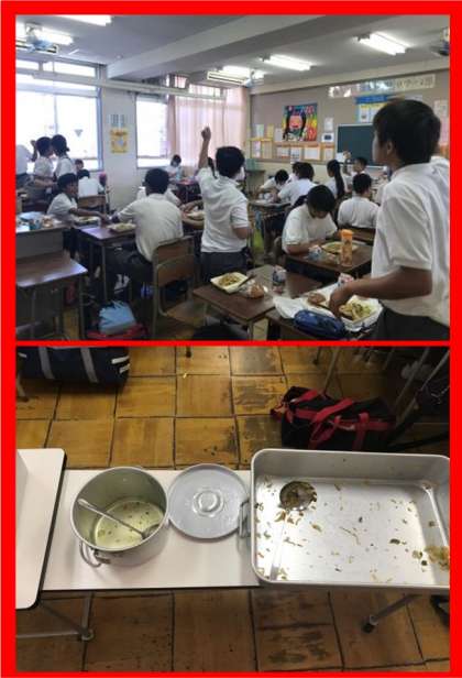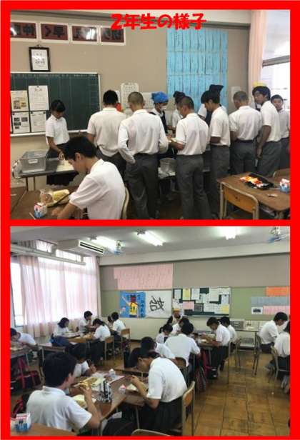 今日の給食は、パン献立のメニューで、「和風焼きそば」・「 きゅうりのゆず風味」でした。2年生の様子を見ると、量が足りないほどよく食べています。(担当:田中)
