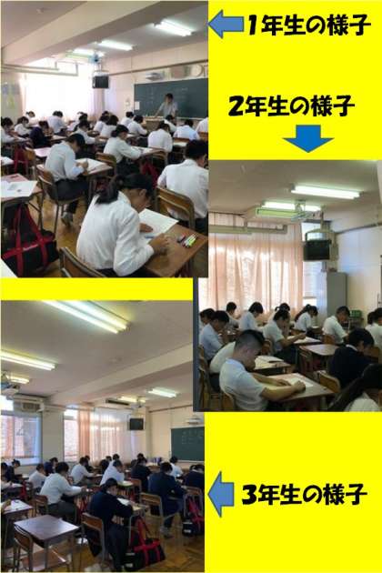 今日と明日の2日間、2学期中間テストです。1日目は「国語」・「理科」・「英語」の3教科でした。もう1日しっかり頑張ろう!(写真上)