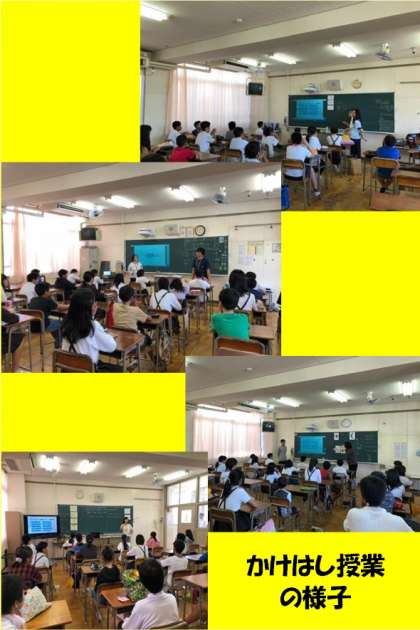 また、昼からは小路小学校と東中川小学校の6年生が生野区役所の協力で今年度2回目の「かけはし事業」を行いました。2小学校を4グループに分け3年生の4教室で外部講師から英語の授業を受けました。