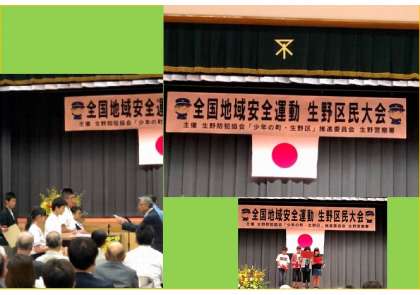 昨日の日曜日、生野区民センター(リゲッタIKUNOホール)午前11時より、全国地域安全運動生野区民大会が開催されました。その中で、本校2年生大北史也君が非行防止の標語において、優秀賞をいただきました。また、連携小学校の小路小学校6年生代表が大会宣言を力強く発言しました。(写真上)