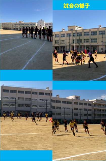 11月3日(土)、大阪市秋季総合体育大会ラグビーの部4回戦が行われました。本校は新巽中学校と対戦しました。終始試合のペースをつかんで戦い、前半は4トライ3ゴールの26点、後半も2トライ2ゴールの14点、合計40点を入れ、守っては7点におさえて勝利、ベスト4に進出できました。たくさんのご声援、ありがとうございました。