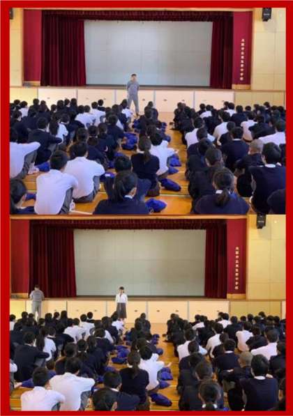 校長先生の挨拶のあと、体育委員からは健康管理について、2年生学年代表からは先週実施した「職場体験」の感想が述べられ、風紀委員、生徒会から連絡がありました。