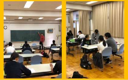 英語・数学を苦手としている生徒、又は、より深く学習したい生徒に、ボランティア講師から、本来の通常授業に意欲的に参加できるよう、学習指導を受けます。ボランティア講師は本校卒業生(28期生)の青木塾青木一彦先生です。