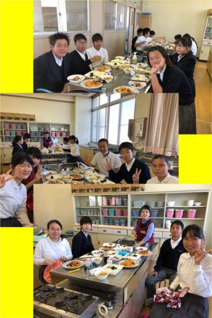 今日は2年2組が調理実習をしました。今回もイタリアンです。もちろん安田先生が助っ人に来ています。
