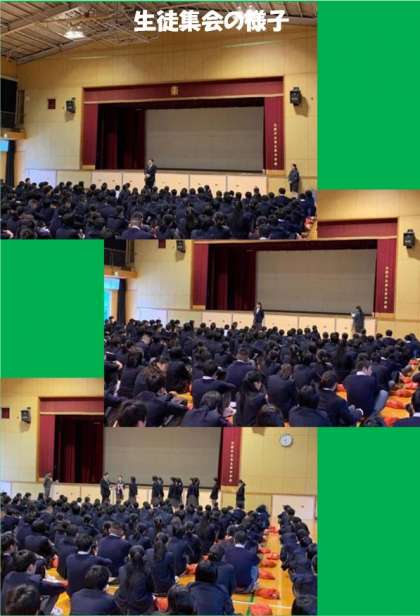 校長先生と生徒会から「残り1週間、学期末懇談で反省するところがあるならばしっかりなおしましょう。」と話がありました。