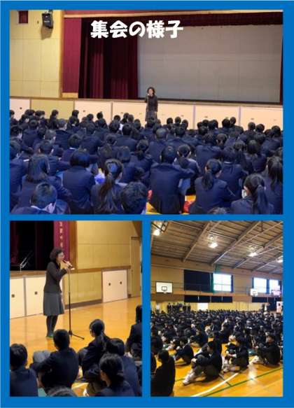 毎週火曜日、スクールカウンセラーの中谷桂子先生が来校され、カウンセラーの活動をしていただいています。校長先生から中谷桂子先生を紹介され、中谷桂子先生からスクールカウンセラーの活動内容をお話していただきました。