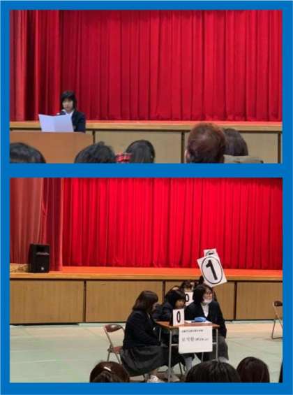 イヤギ(弁論)大会では少し緊張していましたが、頑張って発表できました。クイズ大会では惜しくも負けてしまいましたが、1日楽しく参加できました。(担当:浦久保、田中)