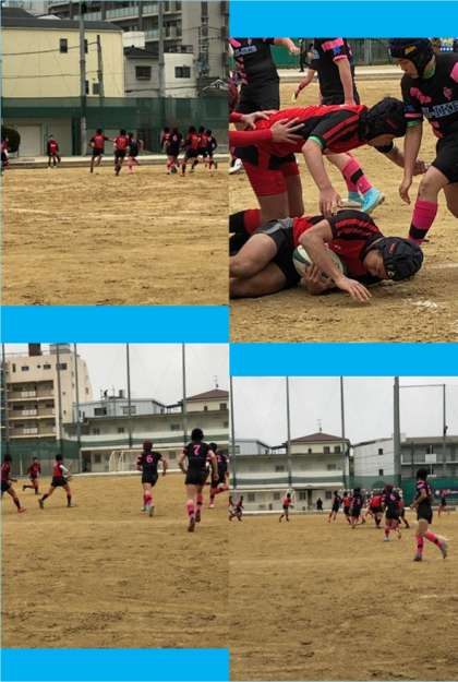 中野中学校のグランドで9時30分キックオフの試合は、終始東生野中学校がペースをつかみ、前半だけで7トライ6ゴールの47点をあげました。後半に入るも、好タックルで得点を許さず、奪っては6トライ2ゴール34点、81対0で南地区新人戦ベスト4に入りました。