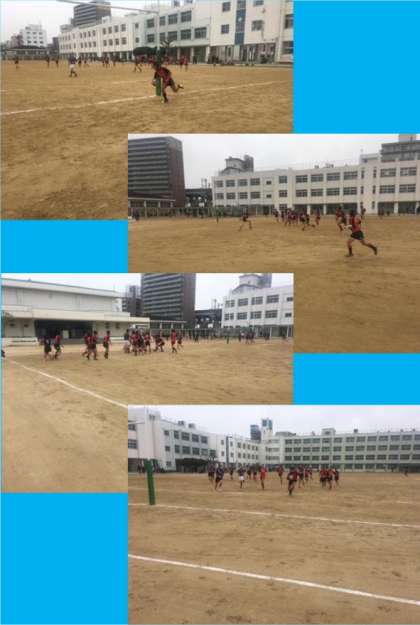 大阪市南地区ラグビーフットボール新人戦大会決勝トーナメントが、今日から始まりました。本校ラグビー部は予選Aグループを1位で通過し、決勝トーナメント1回戦は大池中学校(Dグループ2位)と対戦しました。