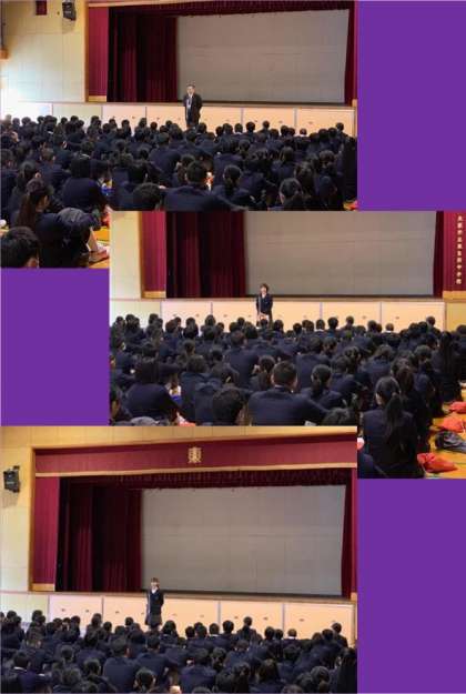校長先生からは、私立高校の入試が終わりましたが公立入試を控えている人もいるので、そのことを考えて学校生活を送りなさい、とお話がありました。生徒会からは今週3年生は進路懇談、1,2年生は教育相談があるので、担任の先生としっかり話しましょう、と話があり、風紀委員、牛ノ濱先生から学校生活においての注意することが話されました。(教頭)