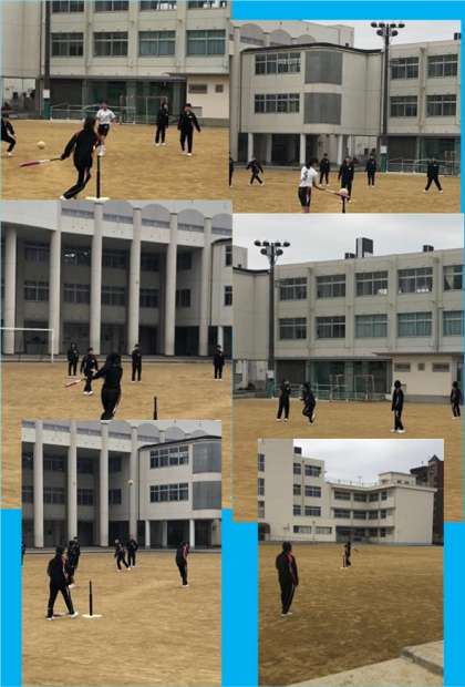 4時間目の体育の授業を見学に行きました。運動場では女子生徒が、ティーボールで、体育館では男子生徒がバスケットボールで、ぞれぞれ楽しく授業をしていました。
