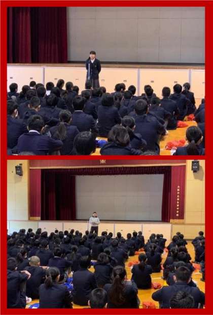 校長先生からは、「3年生で私学専願の生徒は、公立受験を残している生徒のためにも自分のためにも残り少ない授業を頑張ってほしい。また、1,2年生は今月末に学年末テストが控えているので、準備をしてください」とお話がありました。