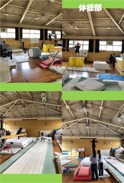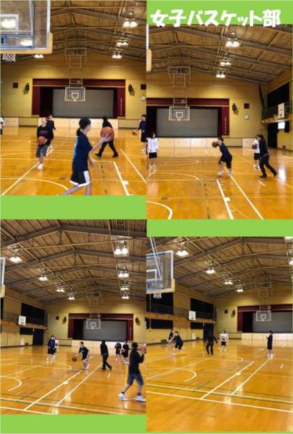 午前中、体操部が格技室で、体育館では女子バスケットボール部が活動しています。