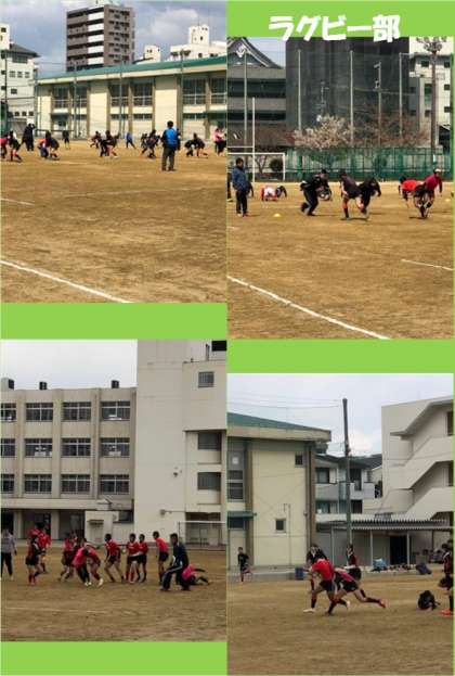 グランドではラグビー部が、大阪緑涼高校女子ラグビー部と矢田西中学校ラグビー部が来られ、合同で練習をしています。