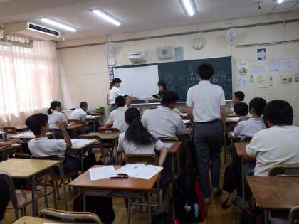 9月3日(水)2年生も頑張っています。1組理科、テスト返しです。2組美術、3組数学の様子です。