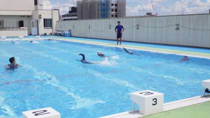 9月3日(水)1年生1組、2組の水泳の様子です。頑張っています。