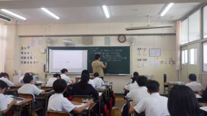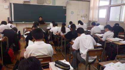 10月1日(水)中間テスト前日の3年生の様子です。1組技術、2組社会、3組体育、自習。明日からのテストに向けて頑張っています。