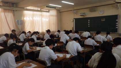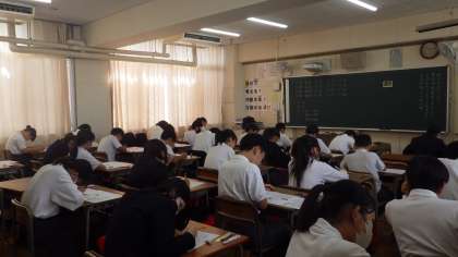10月2日(木)中間テストが始まりました。1年生の様子です。頑張っています。