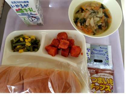 今日は、まぐろを油で揚げて、ケチャップと赤みそ、砂糖を混ぜて作ったたれをからめた「まぐろのオーロラ煮」が出ます。