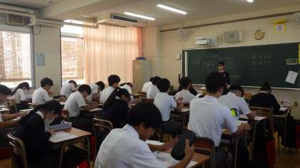 10月6日(月)朝から爽やかな秋の風が吹いています。中間テストが終わりテストが返却されています。3年生の様子です。